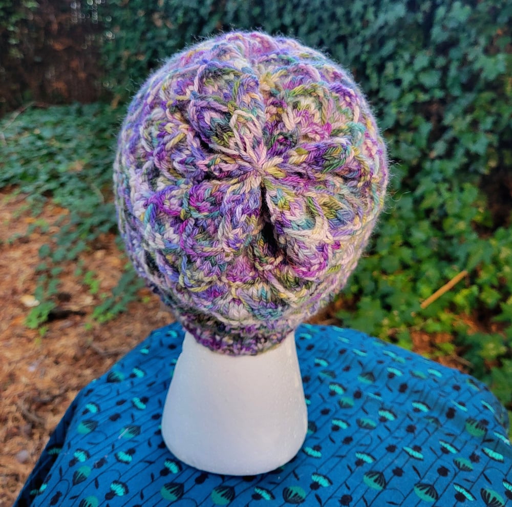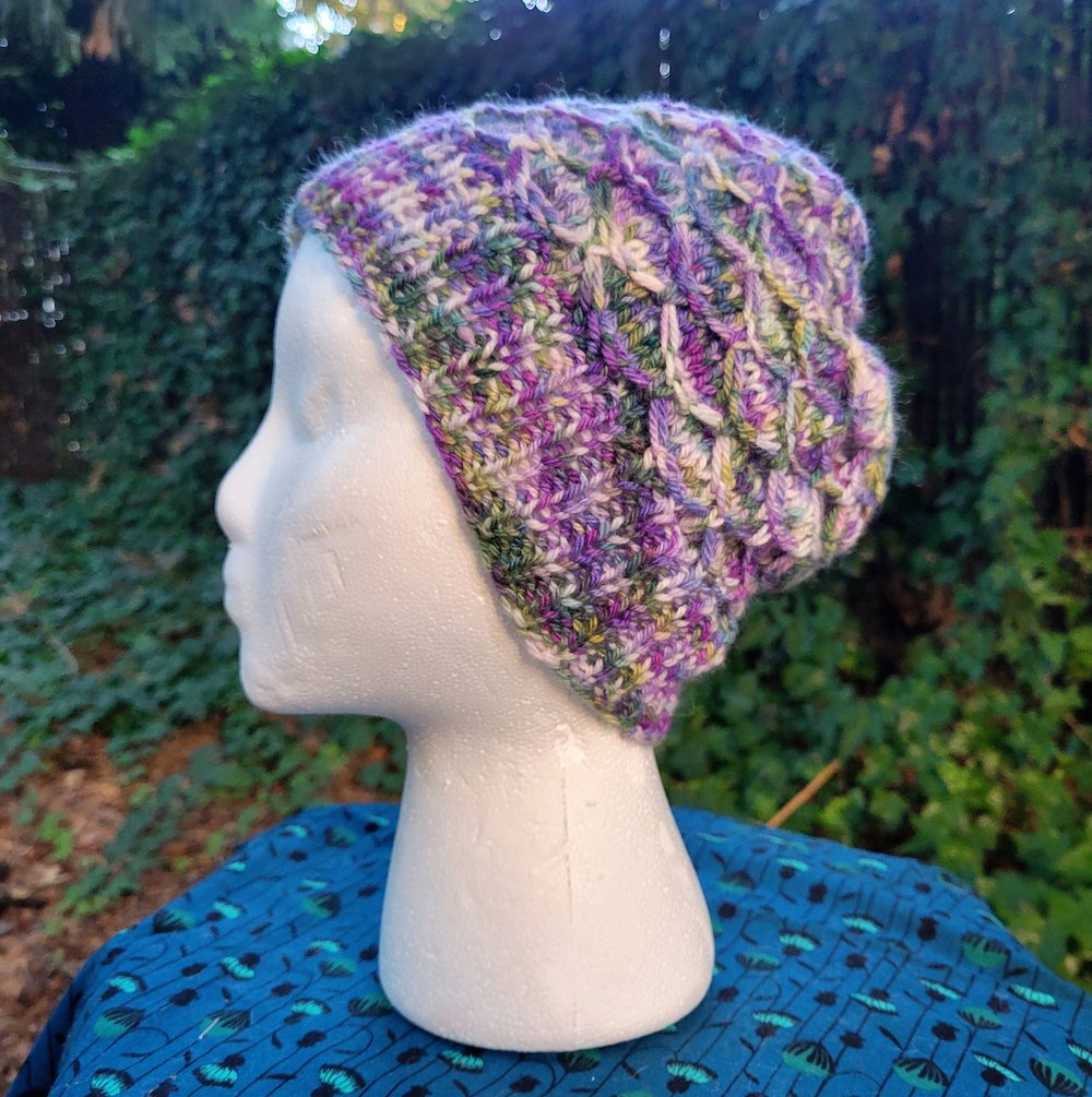 I got the gorgeous yarn for this hat from Compass Moon Creations at the 2024 Oregon Flock & Fiber Festival! Go support them on Etsy!