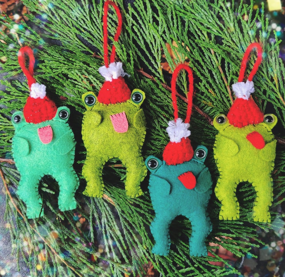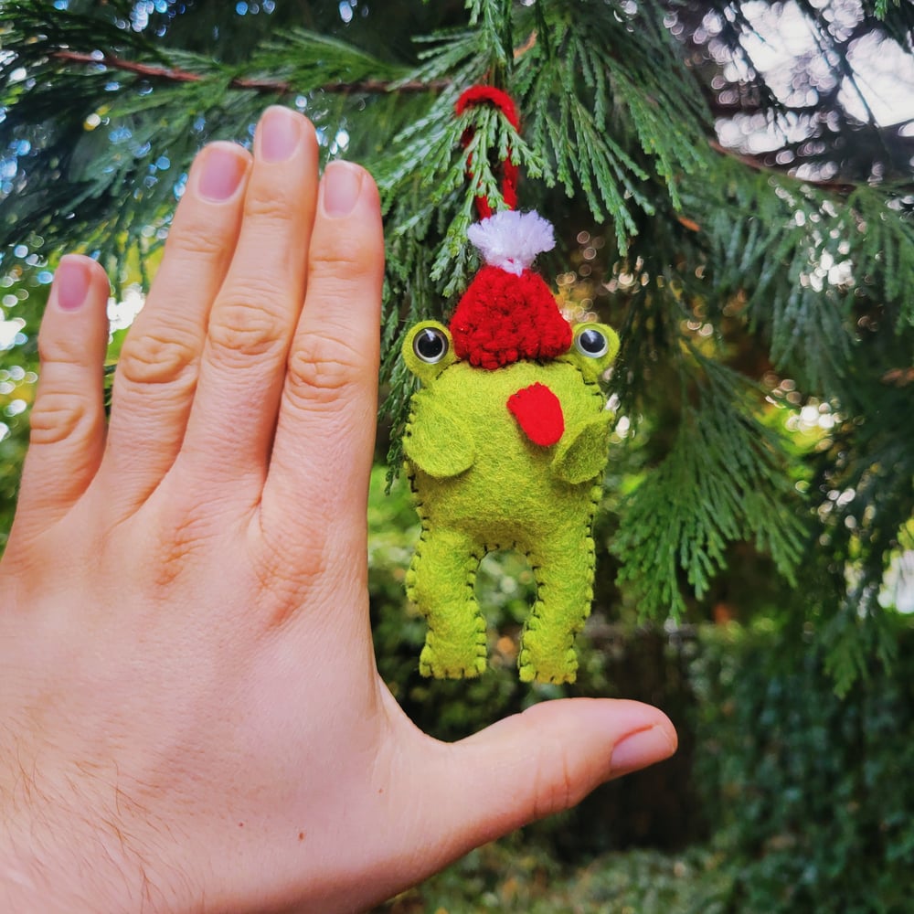 This is a scrap-buster product, so the green felt and tongue color used for your Yuletide Frog may vary. If you have a desired green or tongue color, please leave a note at checkout and I will try my best to make it happen!